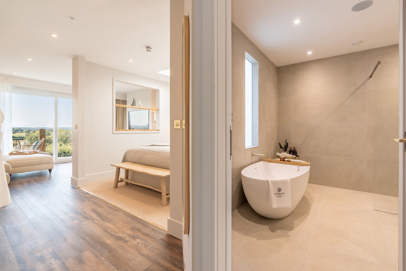Step into a world of luxury with our thoughtfully designed spaces. Relax by the media wall featuring a stunning fireplace, unwind in the freestanding bathtub, or enjoy a rejuvenating experience in the walk-in rainfall shower. Take in panoramic countryside views or gaze at the stars through your private stargazing window above the bed. Each room is equipped with a smart TV with streaming access, in-room climate control, and a private furnished balcony, all complemented by high-end finishings throughout. Every detail of our facilities has been crafted to provide both comfort and elegance.